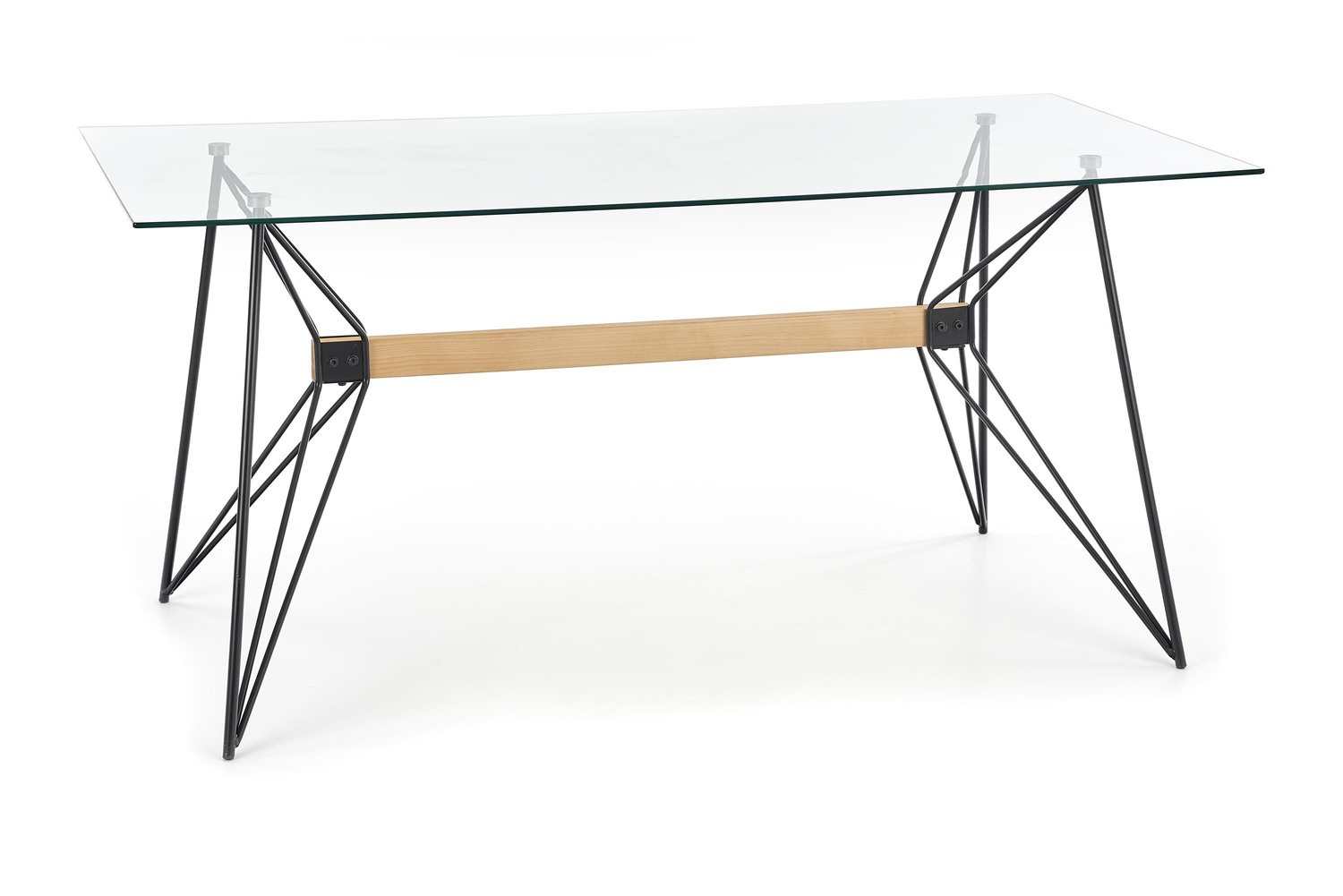 Materiał: szkło / drewno lite - bukowe / stal malowana proszkowo, kolor: blat - transparentny, nogi - kolor czarny
