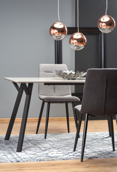 wymiary: 140-180/80/77 cm, rozkładany, materiał: MDF lakierowany / stal malowana proszkowo, kolor: blat - jasny popiel, nogi - czarny