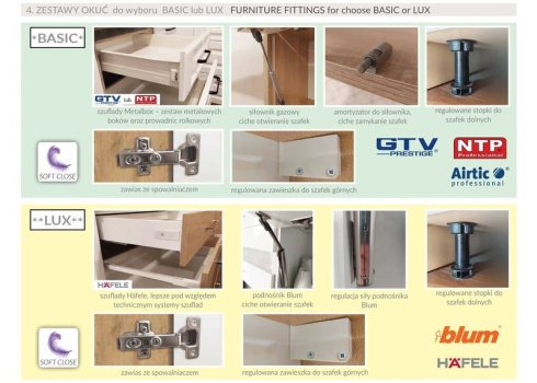 • kolor korpusu (3 kolory) sosna andersen/ dąb sonoma/ dąb artisan