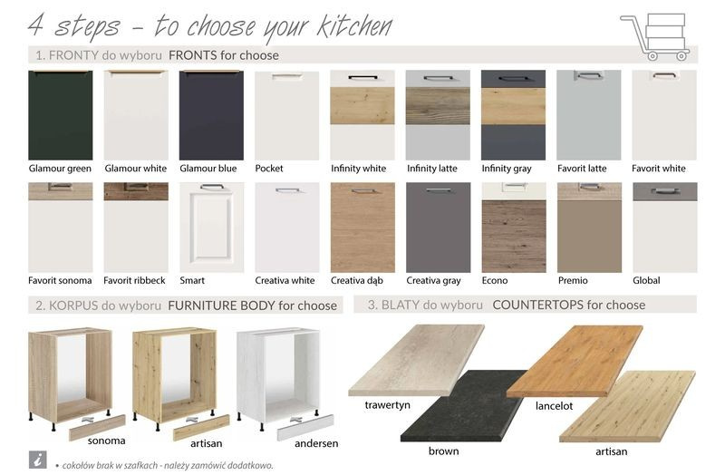 • kolor korpusu (3 kolory) sosna andersen/ dąb sonoma/ dąb artisan