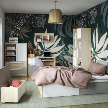 Proste kształty mebli oraz jasna kolorystyka połączona z bielą, oraz szarością to cechy charakterystyczne kolekcji DROP, która idealnie wpisuję się w skandynawski klimat wnętrz.